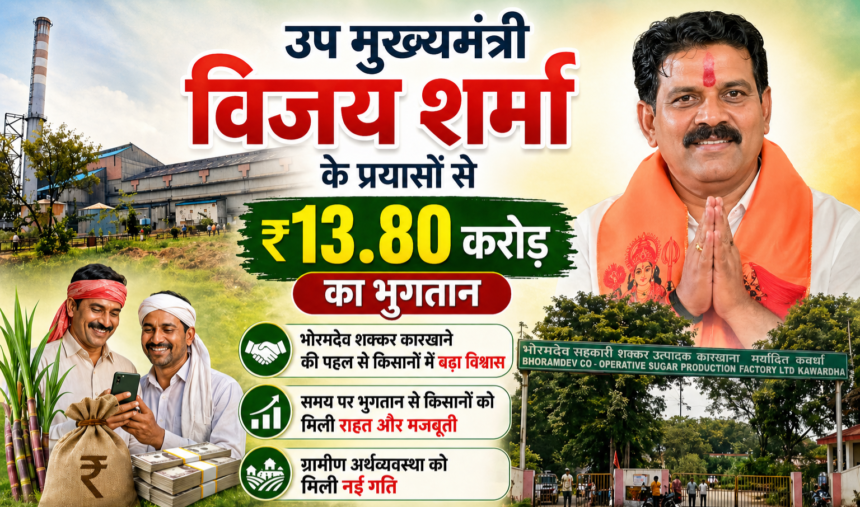 उप मुख्यमंत्री विजय शर्मा के प्रयासों से ₹13.80 करोड़ का भुगतान, भोरमदेव शक्कर कारखाने की पहल से किसानों में बढ़ा विश्वास और ग्रामीण अर्थव्यवस्था को मिली नई गति